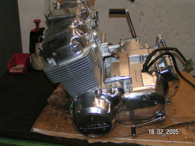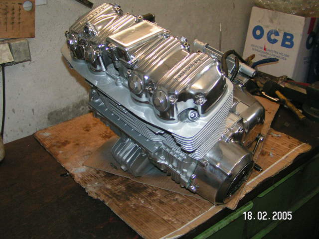 Der Motor bekam die erste Übergröße und wurde neu lackiert. Alle Seitendeckel wurden auf Hochglanz poliert und die Kreuzschlitzschrauben durch Inbusschrauben ersetzt. Die Vergaser wurden überholt und eine elektronische Zündanlage wurde verbaut. Die Krönung jedoch war die neue Lackierung sowie die neue Auspuffanlage ( HM300 ).