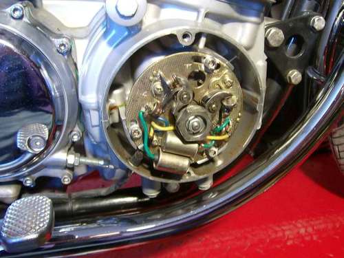 1. Demontiere den Zündungsdeckels auf der rechten Motorseite und bau die Kontaktplatte aus.