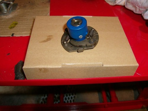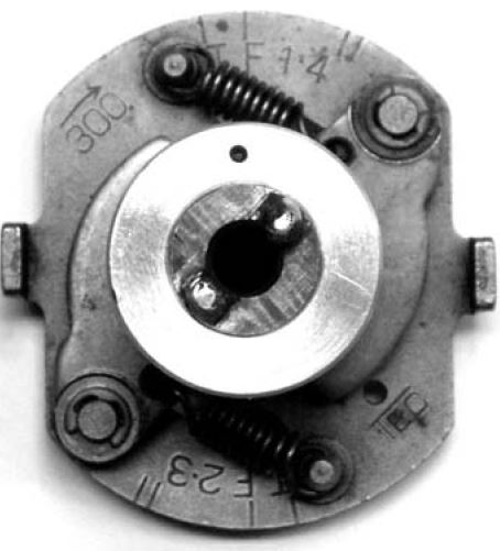 2. Nehme die Aluminiumhülse der elektronischen Zündung und montiere die auf dem Fliehkraftversteller, indem die Fliehkraftgewichte nach außen gedrückt werden.